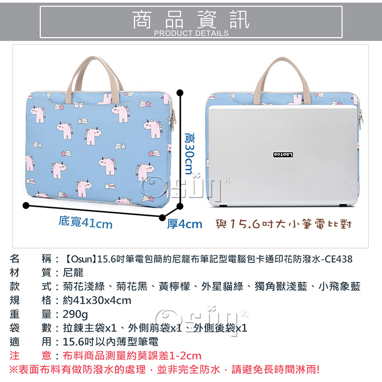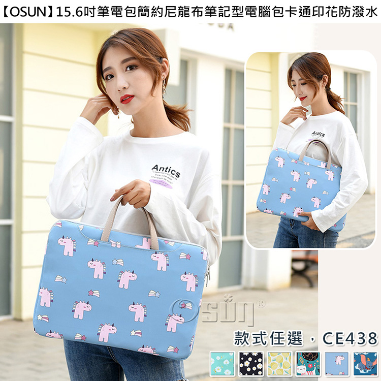 名稱:【Osun】15.6吋筆電包簡約尼龍布筆記型電腦包卡通印花防潑水(款式任選/CE438)