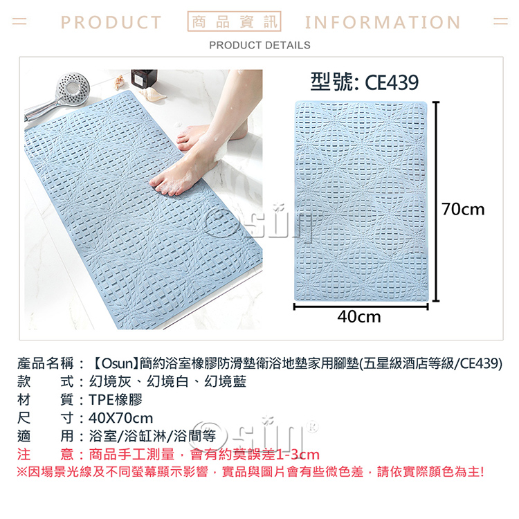 名稱:【Osun】簡約浴室橡膠防滑墊衛浴地墊家用腳墊(五星級酒店等級/CE439)