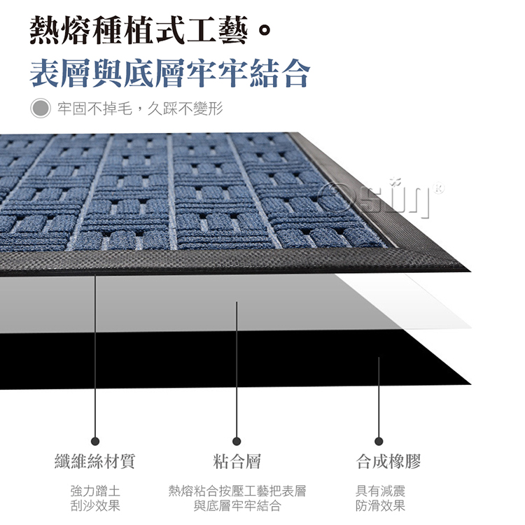 正面滌綸毯面-立體毯面踩後不倒塌,更耐磨好吸附鞋底泥沙