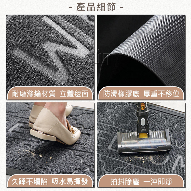 耐磨吸塵吸水,更好吸附鞋底的塵埃,即使下雨天,也能保持室內的乾爽。