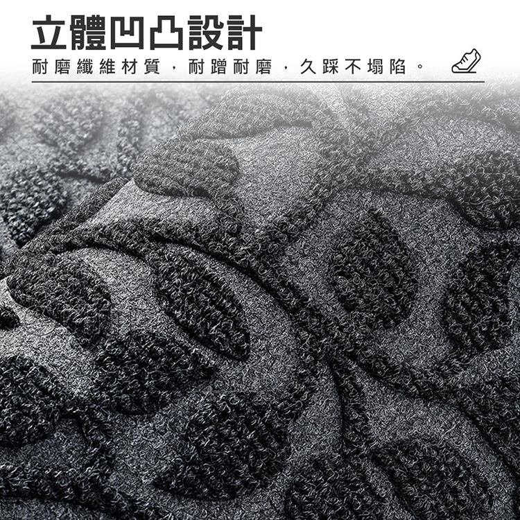 腳踩上地墊受力均勻,可有力的刮除鞋底大塊污泥,並有效擦除細小灰塵。