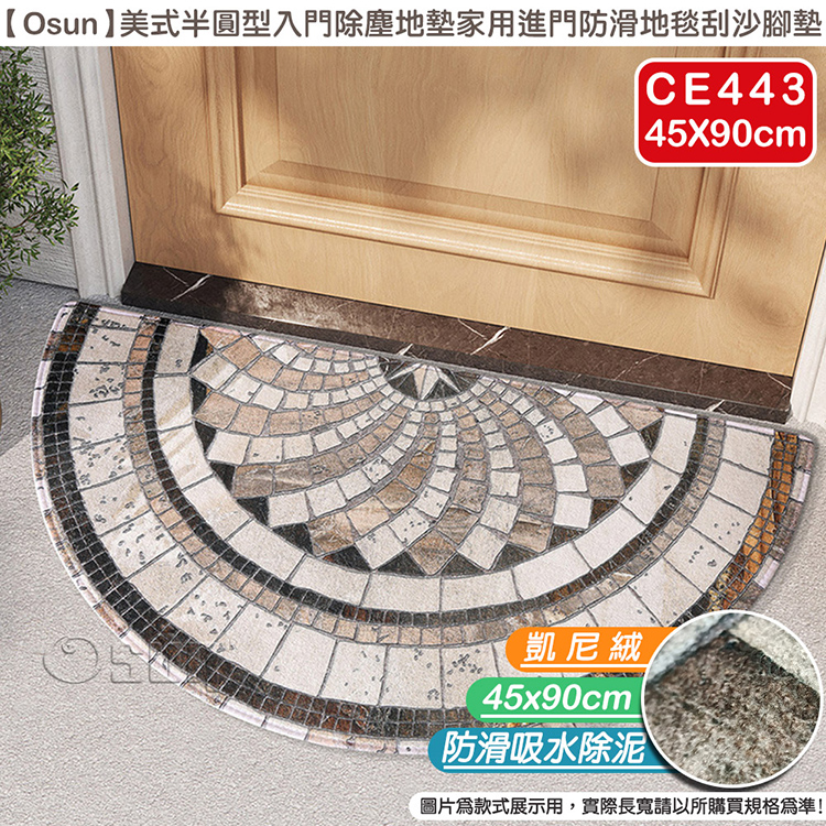 【Osun】45x90cm美式半圓型入門除塵地墊家用進門防滑地毯刮沙腳墊(羅馬假日CE443)