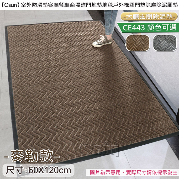 【Osun】室外防滑墊客廳餐廳商場進門地墊地毯戶外橡膠門墊除塵除泥腳墊(麥勒款 60X120cm /CE443)