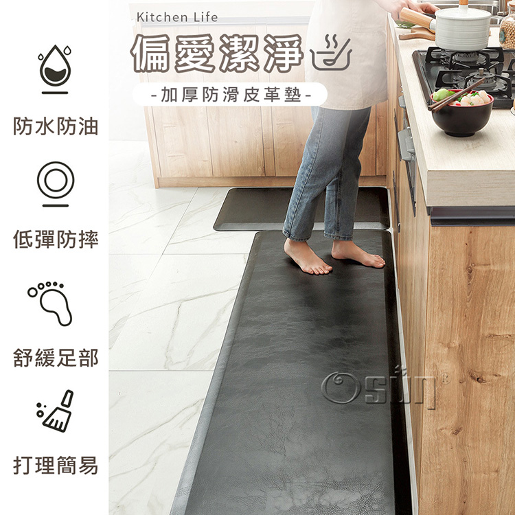 名稱:【Osun】50x80cm PU皮革廚房地墊耐磨可擦洗防油污防水防滑腳墊進門墊(尚雅款/CE445)
