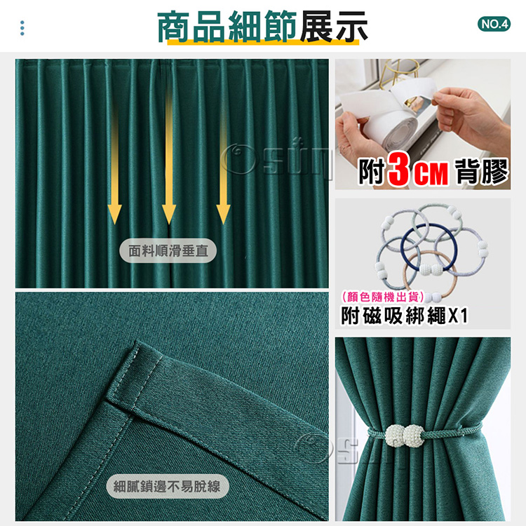 名稱:【Osun】150x200cm全遮光窗簾簡易安裝自黏魔鬼氈免打孔加厚素面單片裝(多色任選/CE446B)
