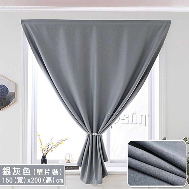 【Osun】150x200cm全遮光窗簾簡易安裝自黏魔鬼氈免打孔加厚素面單片裝(多色任選/CE446B)