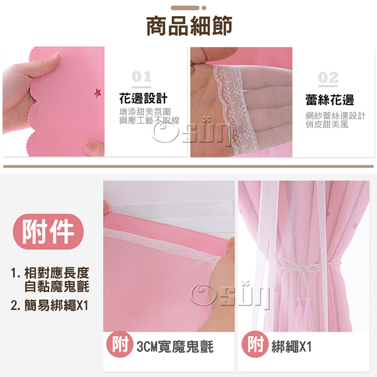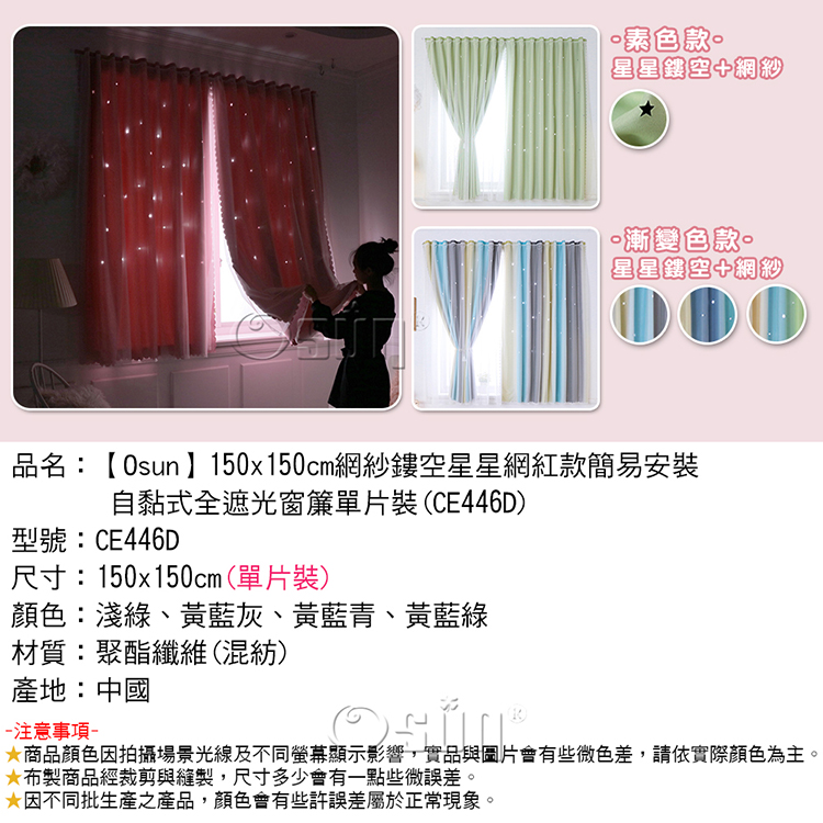 名稱:【Osun】150x150cm網紗鏤空星星網紅款簡易安裝自黏式全遮光窗簾單片裝(多色任選/CE446D)