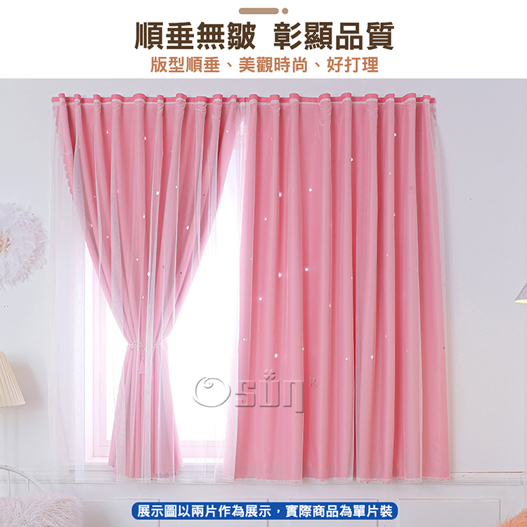 【Osun】150x150cm網紗鏤空星星網紅款簡易安裝自黏式全遮光窗簾單片裝(多色任選/CE446D)