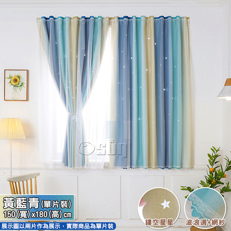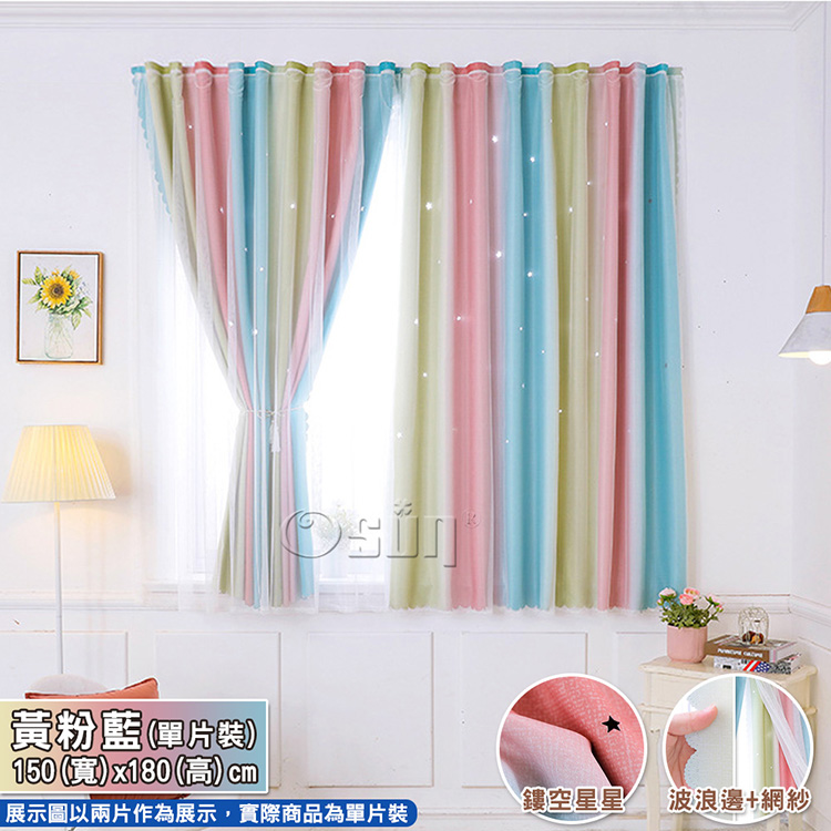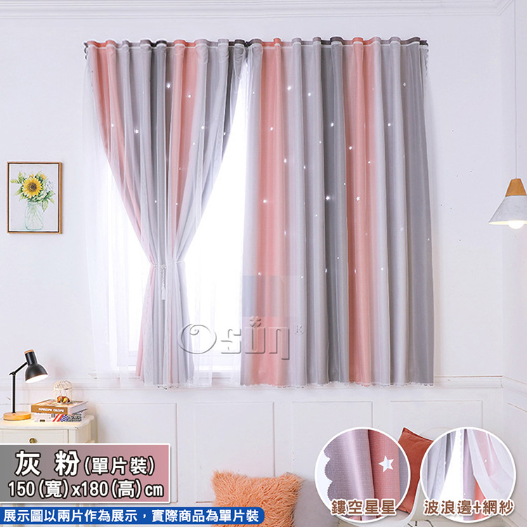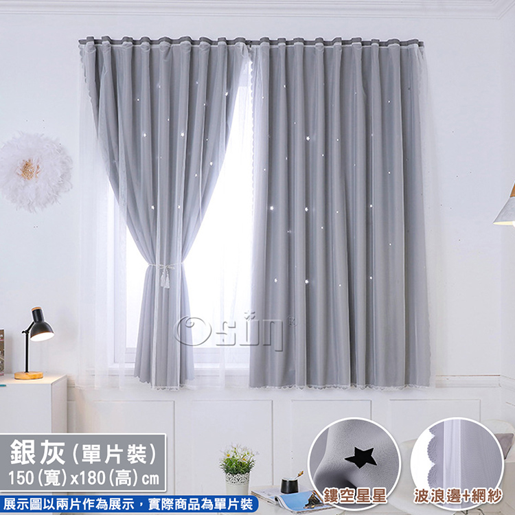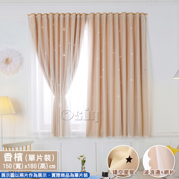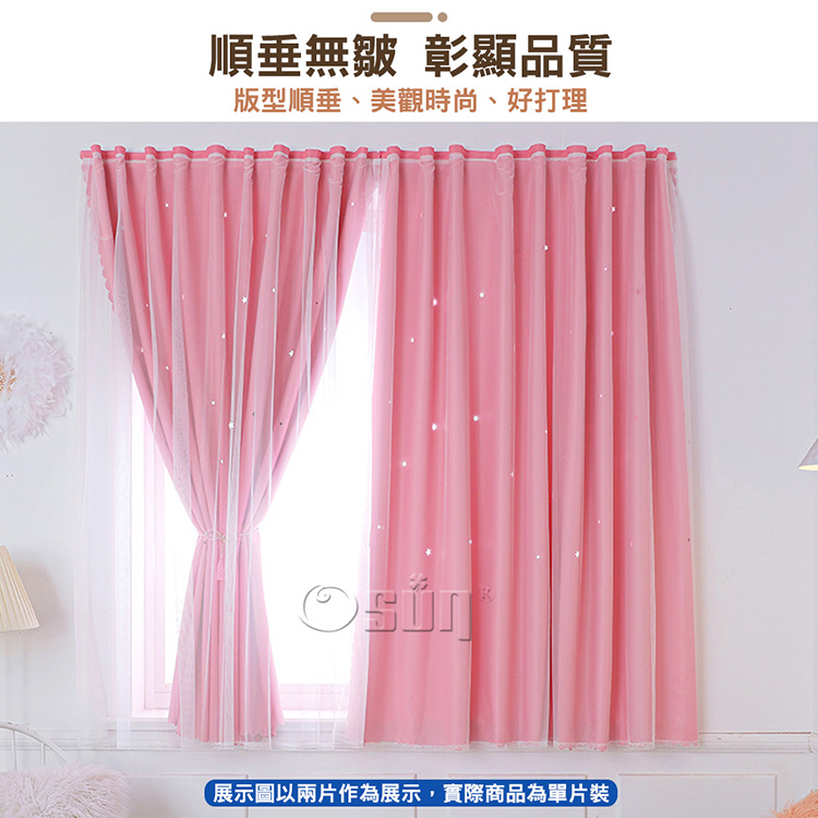 【Osun】150x180cm網紗鏤空星星網紅款簡易安裝自黏式全遮光窗簾單片裝(多色任選/CE446D)