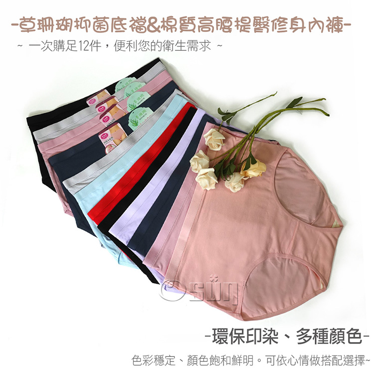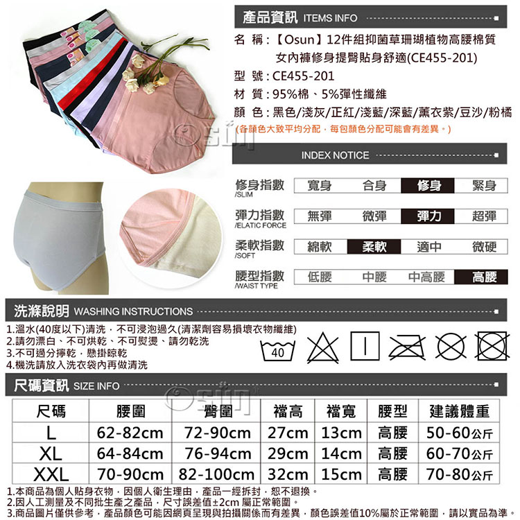 產品名稱:【Osun】12件組抑菌草珊瑚植物高腰棉質女內褲修身提臀貼身舒適(CE455-201)