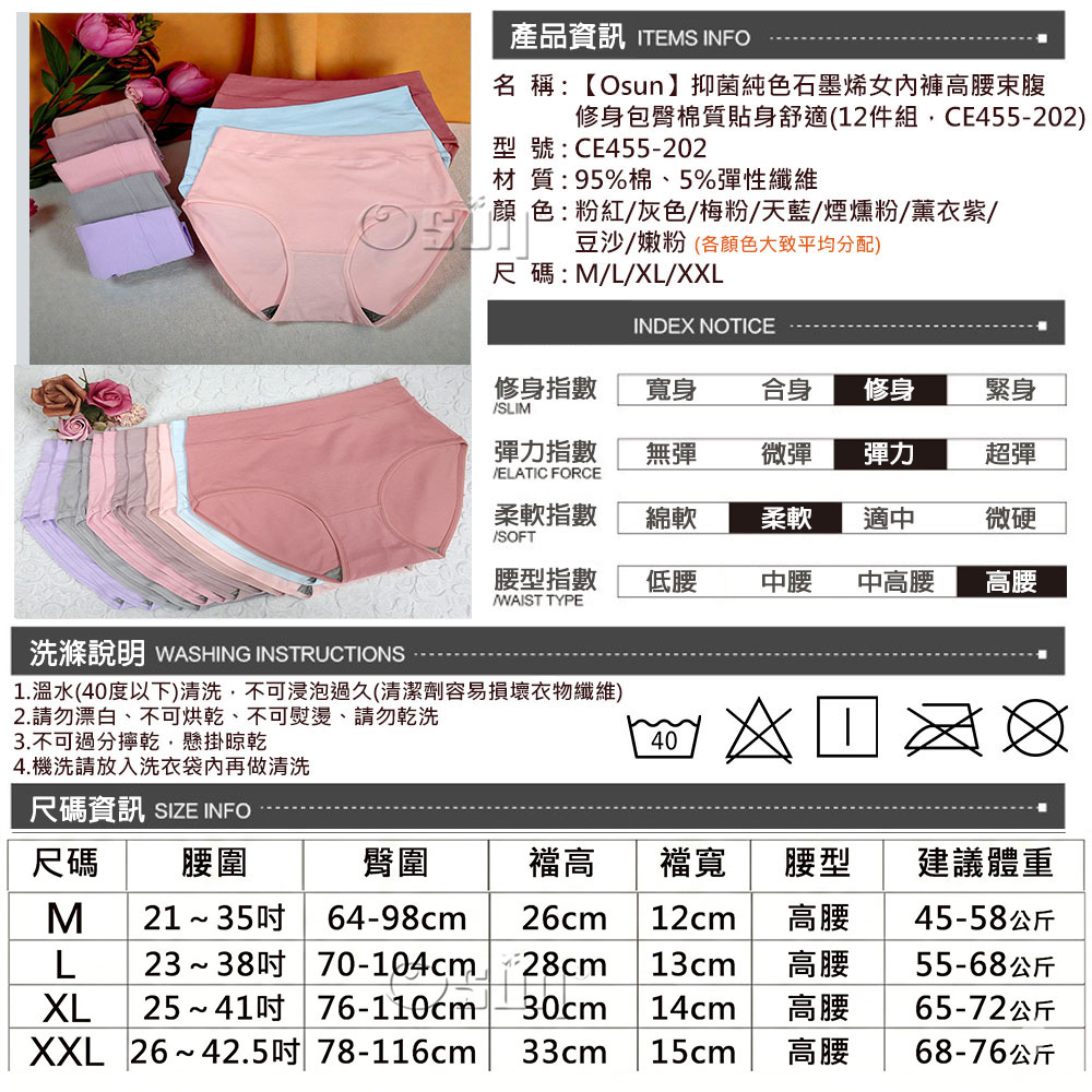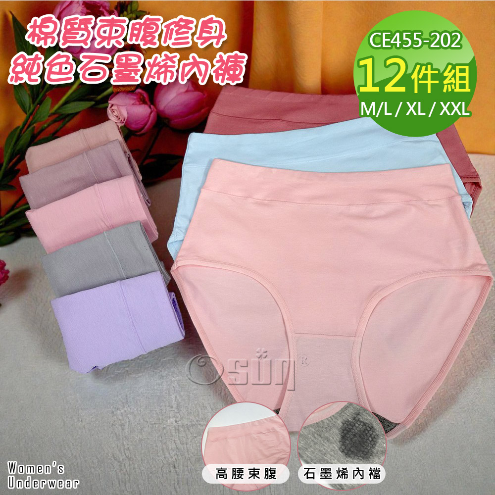 產品名稱:【Osun】抑菌純色石墨烯女內褲高腰束腹修身包臀棉質貼身舒適(12件組,CE455-202)