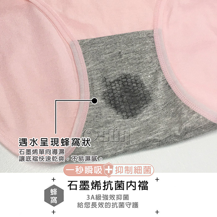 襠部採用石墨烯複合抑菌技術,有效殺菌,遇水呈現蜂窩狀,單向導濕,快速排濕、讓您乾爽舒適一整天,時刻照顧到私密處健康!