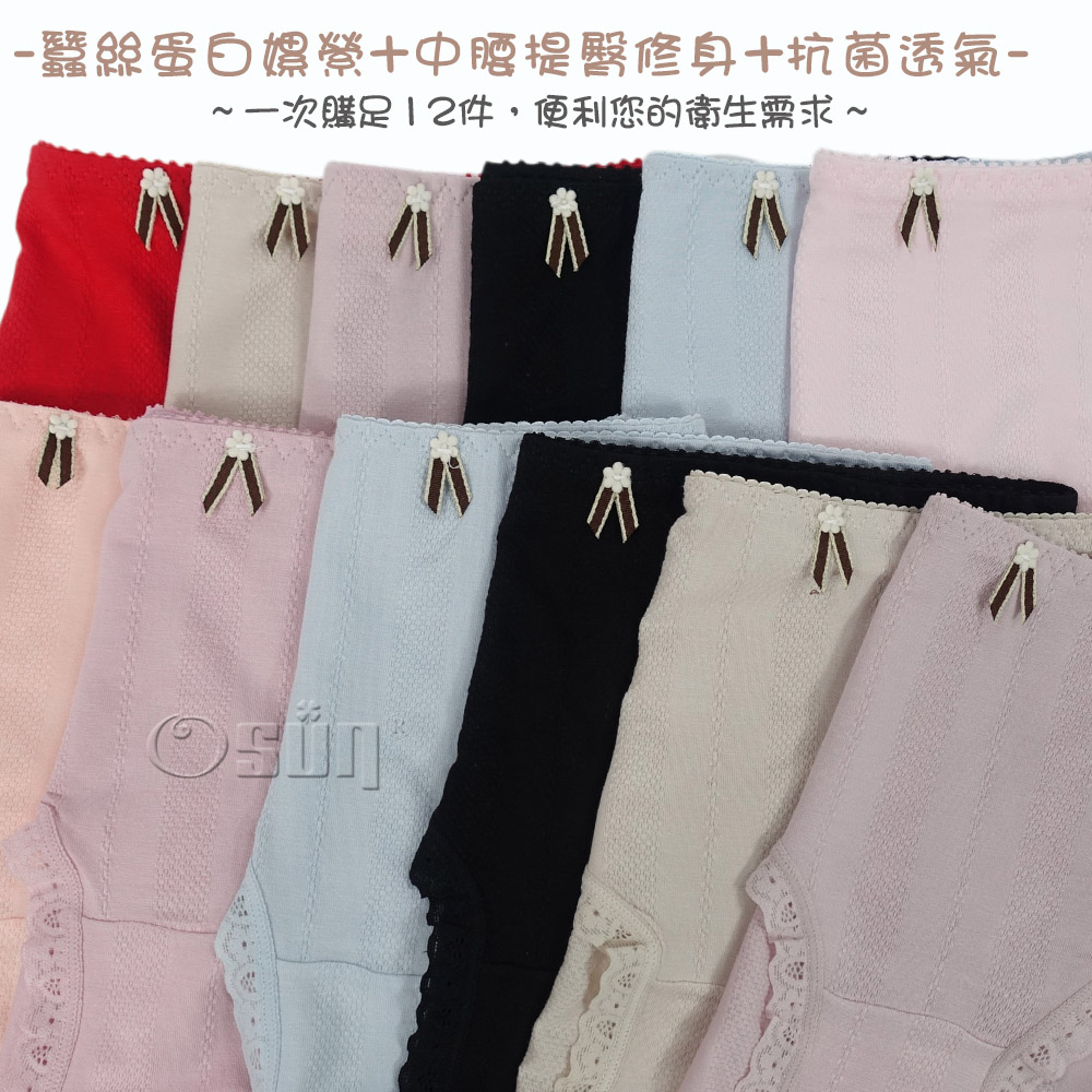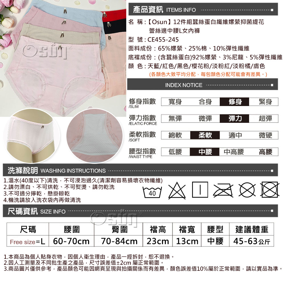 【Osun】12件組蠶絲蛋白纖維嫘縈抑菌緹花蕾絲邊中腰L女內褲(CE455-245)