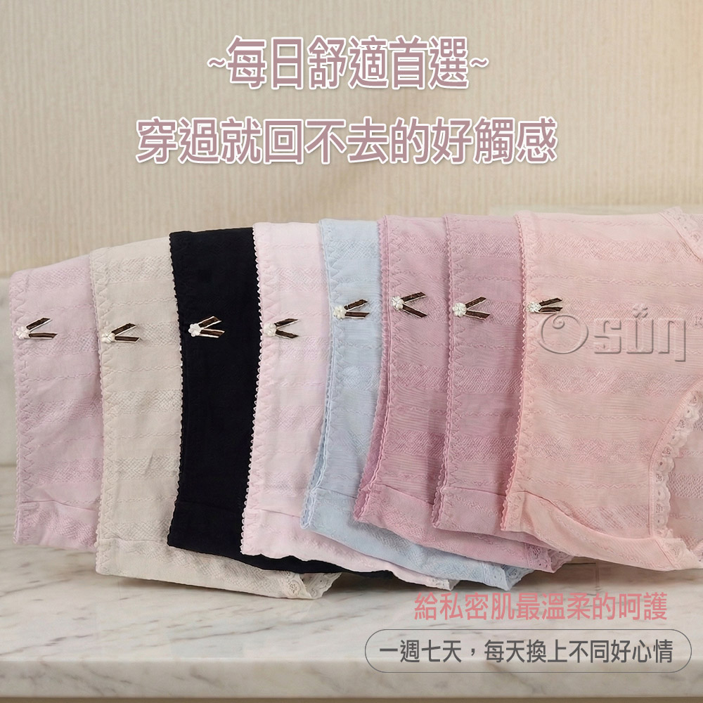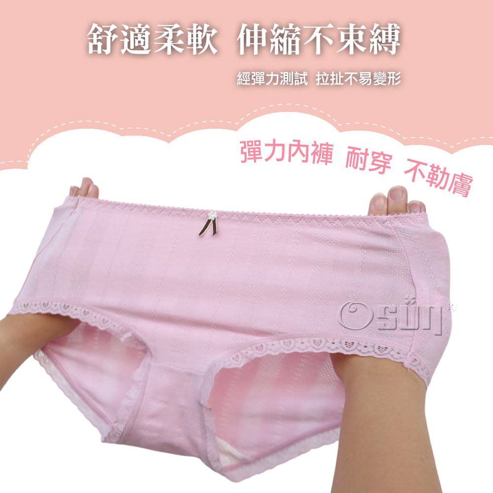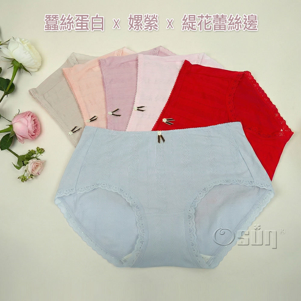 產品名稱:【Osun】蠶絲蛋白纖維嫘縈抑菌緹花蕾絲邊中腰L女內褲