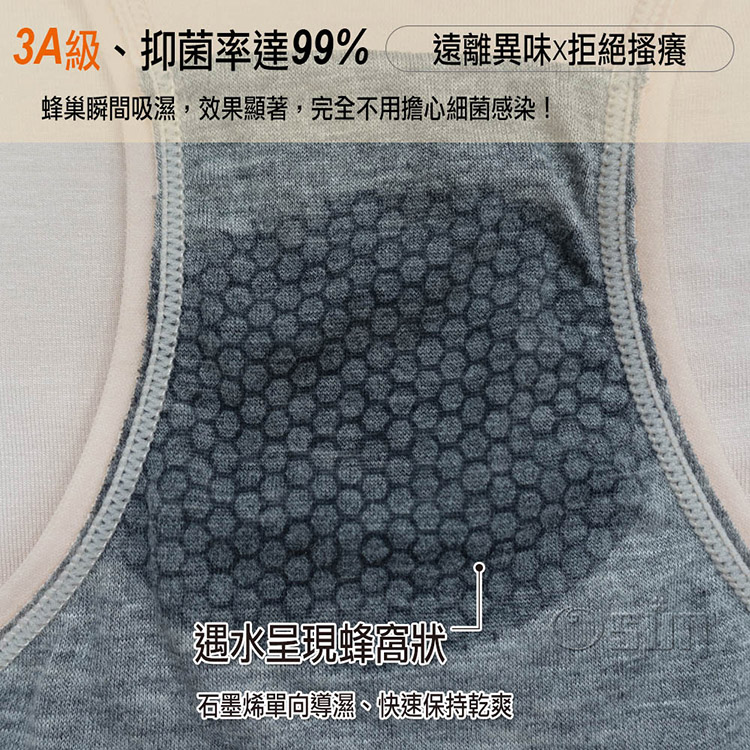 襠部採用石墨烯複合抑菌技術,有效殺菌,遇水呈現蜂窩狀,單向導濕,快速排濕、讓您乾爽舒適一整天,時刻照顧到私密處健康!