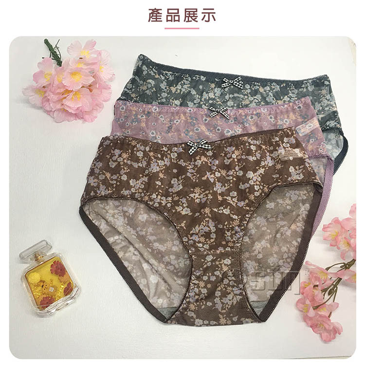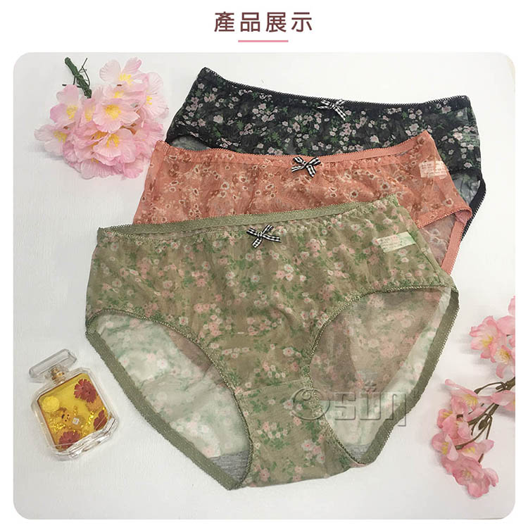 透氣網紗小碎花透膚中腰三角內褲,高彈力不緊勒,彈性面料延伸性極佳!