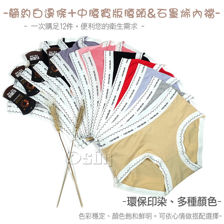 【Osun】12件組少淑女中腰純色簡約白邊條嫘縈棉質抑菌石墨烯內褲(CE455-841)