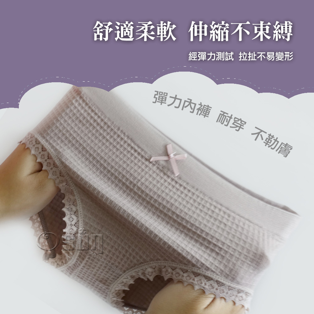 品名:【Osun】12件組少淑女中腰彈性無痕一體成型三角內褲蝴蝶結立體格紋滾蕾絲(CE455-8802)