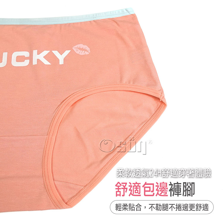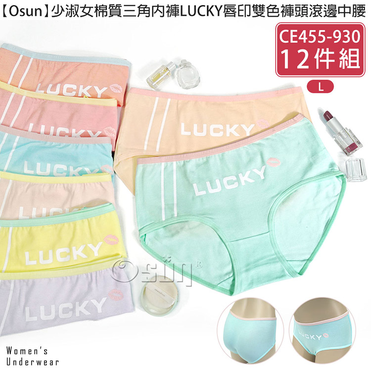 【Osun】12件組少淑女棉質三角內褲LUCKY唇印雙色褲頭滾邊中腰(CE455-930)
