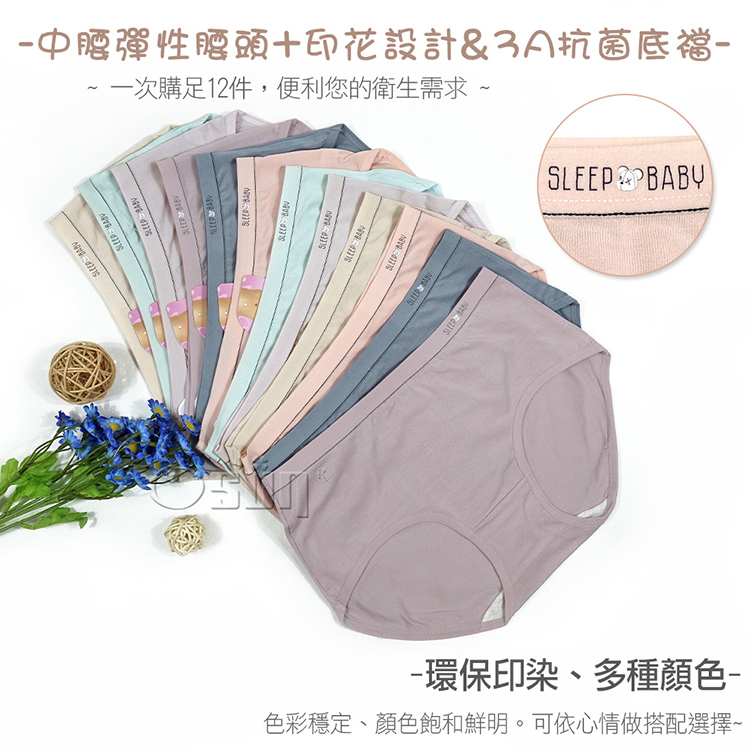 產品名稱:【Osun】12件組少淑女純色中腰抗菌嫘縈SleepBaby好眠三角內褲(CE455-944)