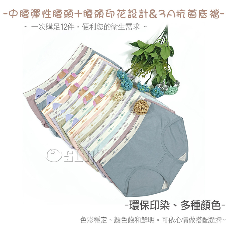 【Osun】12件組少淑女純色白色腰頭中腰抗菌嫘縈nice三角內褲(CE455-945)