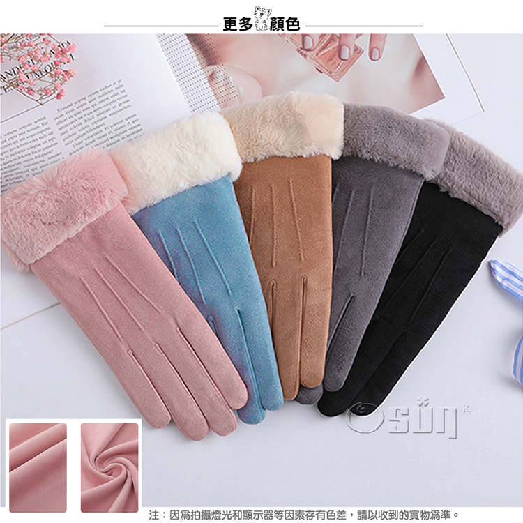 品名:【Osun】冬季麂皮絨加絨加厚保暖騎車防寒觸屏手套 (多色任選,CE462-毛口三道筋)
