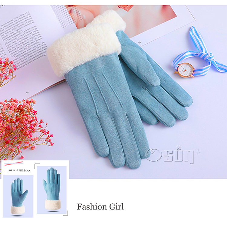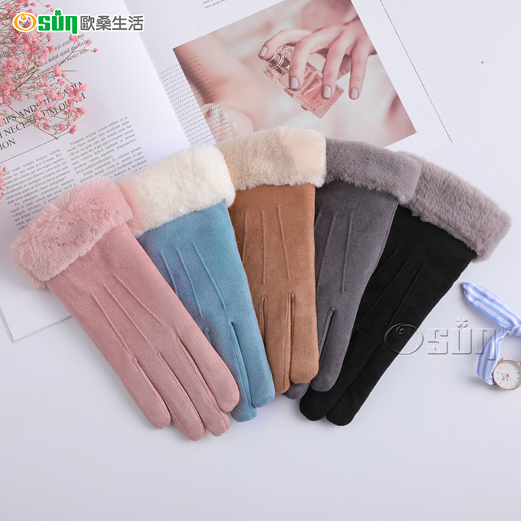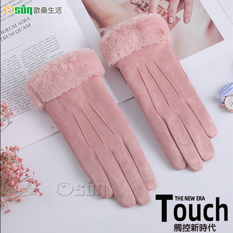 【Osun】冬季麂皮絨加絨加厚保暖騎車防寒觸屏手套 (多色任選,CE462-毛口三道筋)