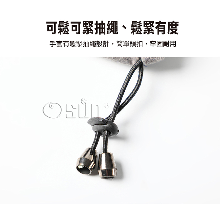 ‧防風御寒、表層防潑水材質、手套有鬆緊抽繩設計,簡單鎖扣,牢固耐用