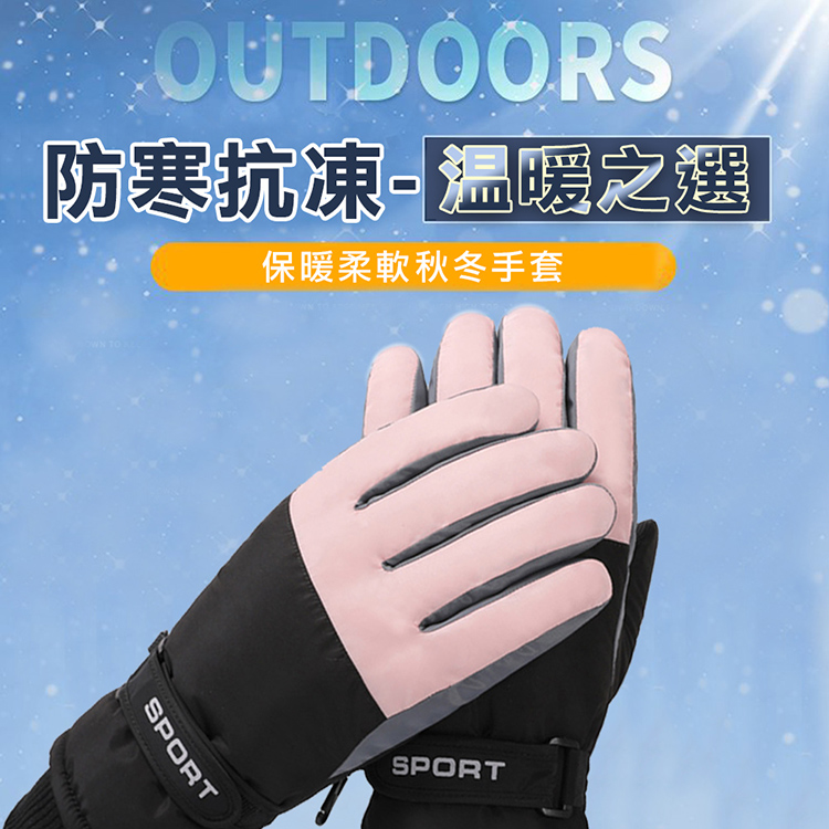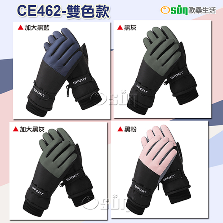 【Osun】冬季保暖戶外騎行加絨防寒防水觸屏情侶滑雪手套(多色任選,CE462-雙色款)