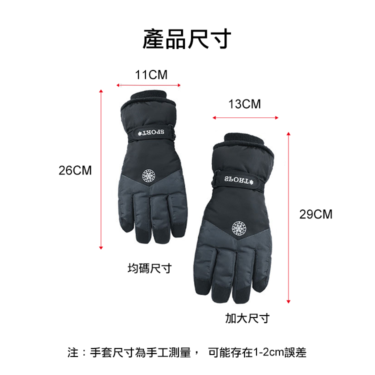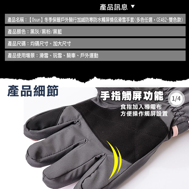 名稱:【Osun】冬季保暖戶外騎行加絨防寒防水觸屏情侶滑雪手套(多色任選,CE462-雙色款)