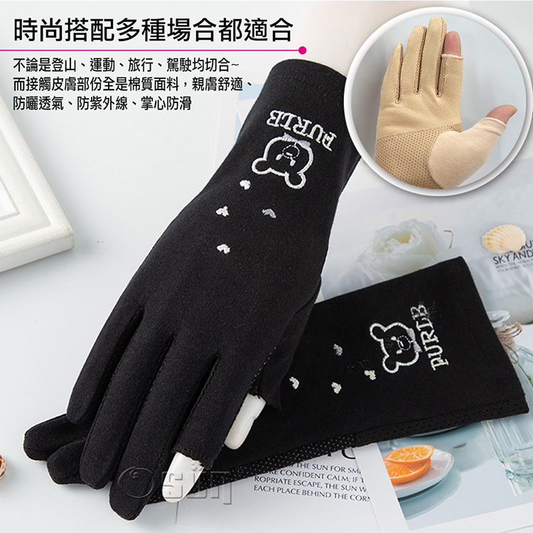 名稱:【Osun】女薄款戶外騎行開車彈性透氣刺繡防曬防滑觸屏露二指手套(多色任選,CE462-薄觸屏露二指)