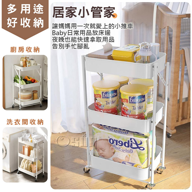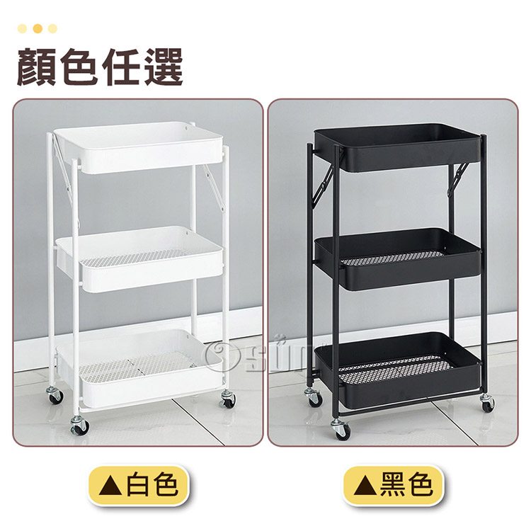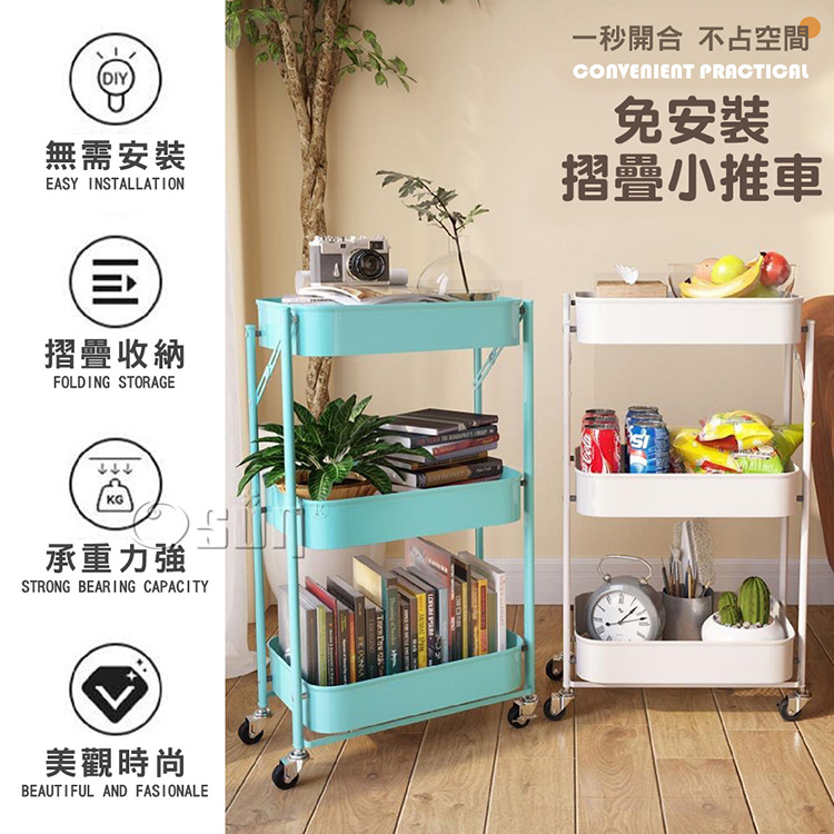 品名:【Osun】免安裝移動折疊三層金屬置物架小推車收納車(多色任選/CE463)