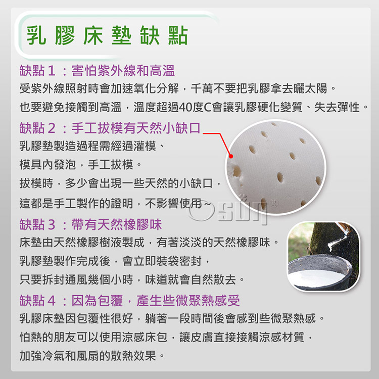 產品名稱:【Osun】天然乳膠透氣床墊單人加大款(CE466)