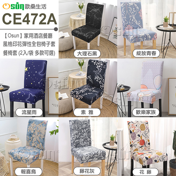 品名:【Osun】家用酒店餐廳風格印花彈性全包椅子套餐椅套(2入/袋 多款可選,CE472A)