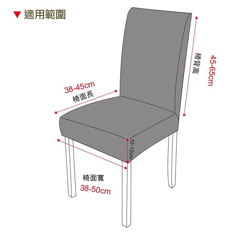 椅背高:45~65cm,椅面長:38~45cm,椅面寬:38~50cm
