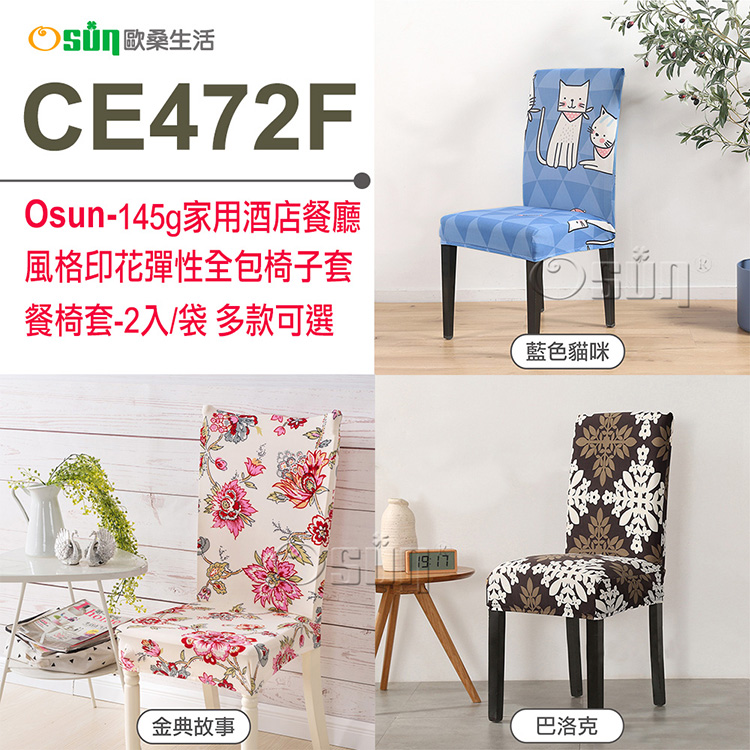 【Osun】145g家用酒店餐廳風格印花彈性全包椅子套餐椅套 (2入/袋 多款可選,CE472F)