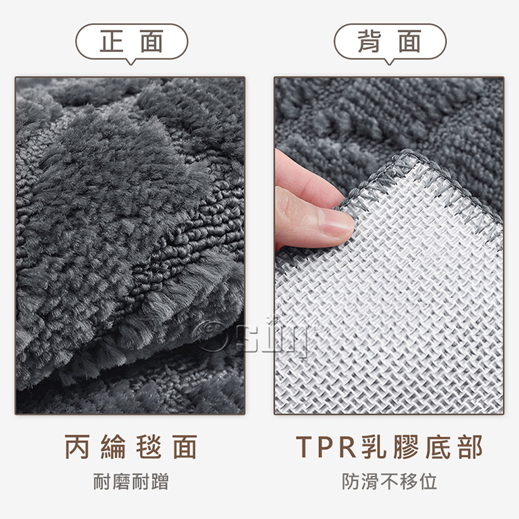 正面丙綸毯面-立體絨面耐磨除塵又吸水,更好吸附鞋底的塵埃