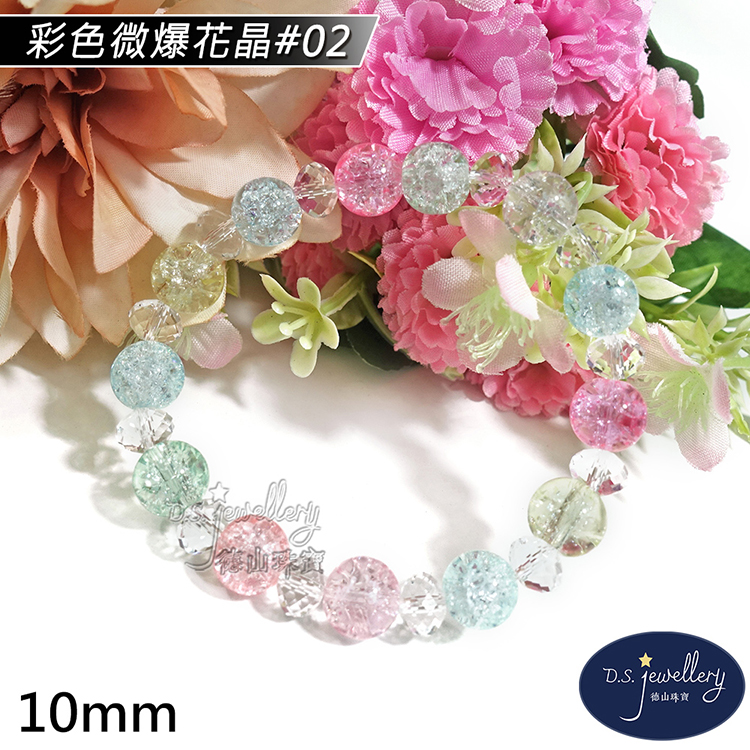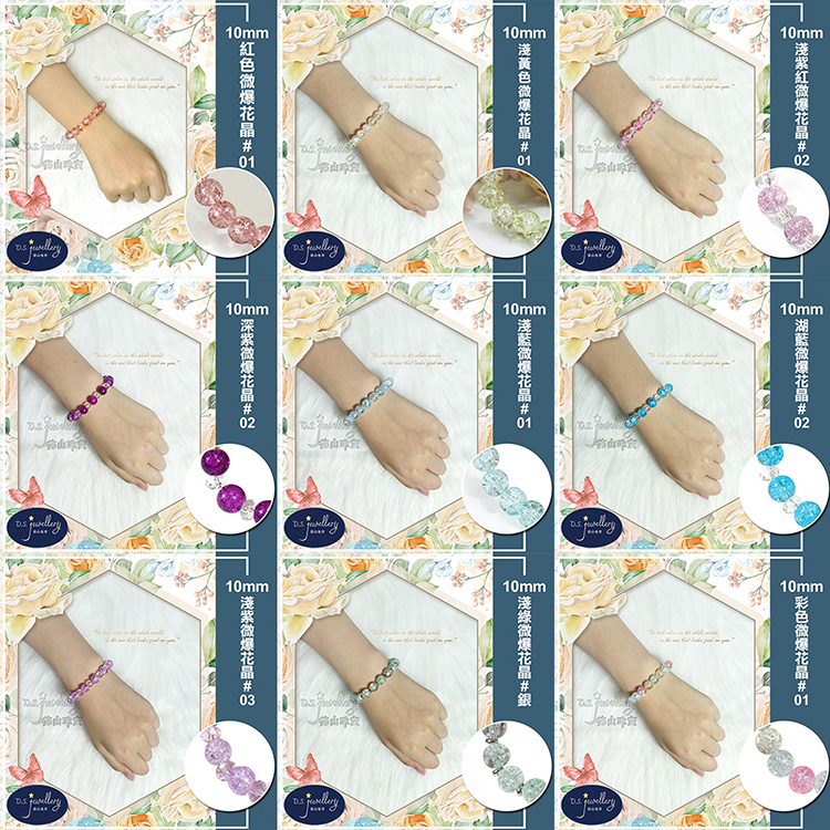 名稱:【德山珠寶】5A級10mm多色微爆花晶穿搭配色水晶琉璃造型手鍊(CE476)