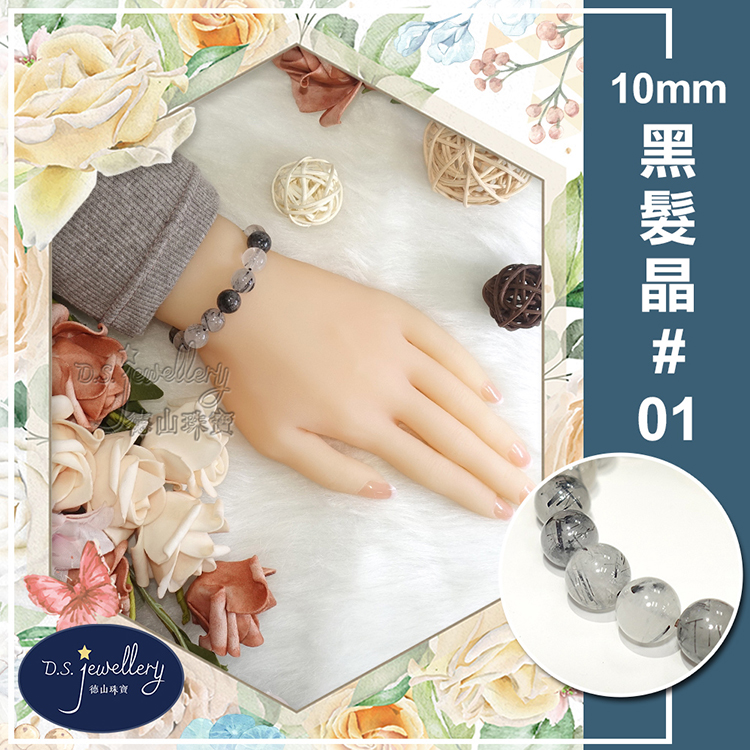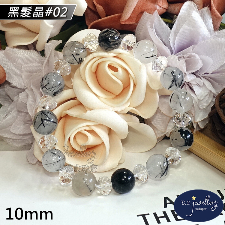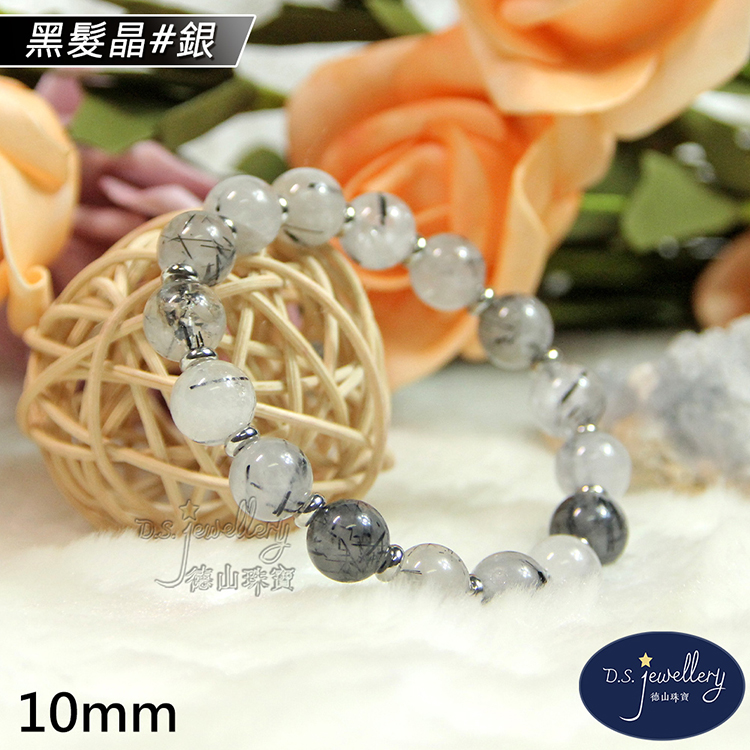 【德山珠寶】5A級10mm天然黑髮晶水晶造型手鍊(CE476)