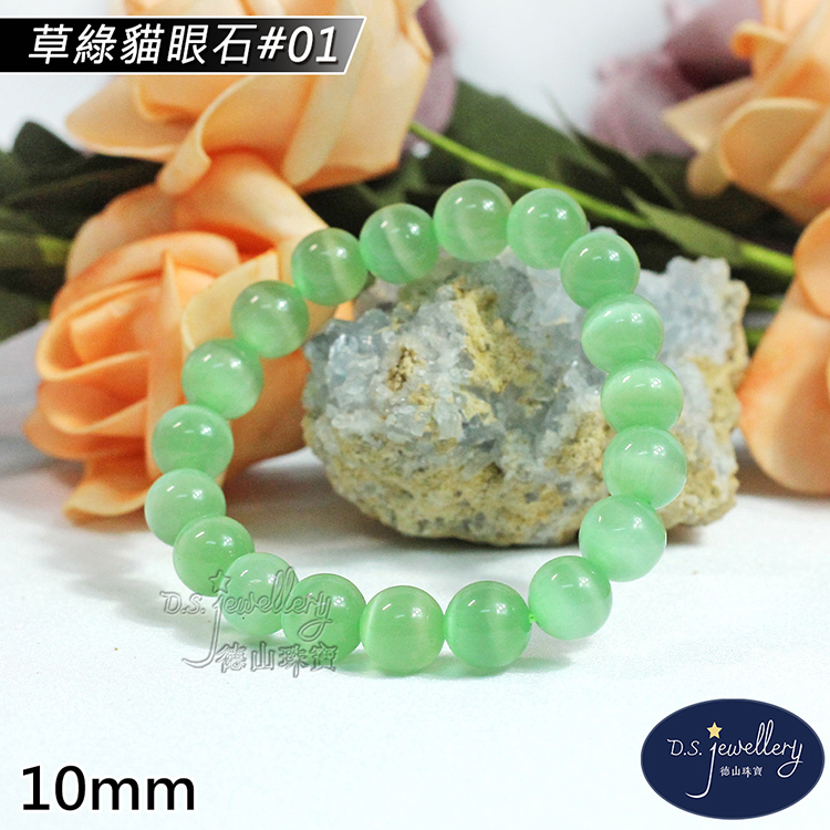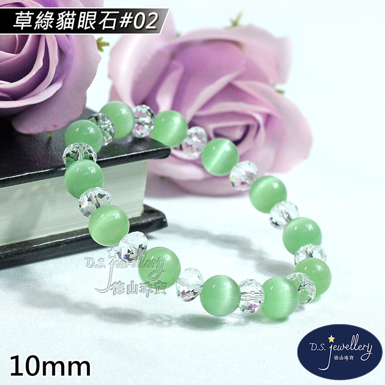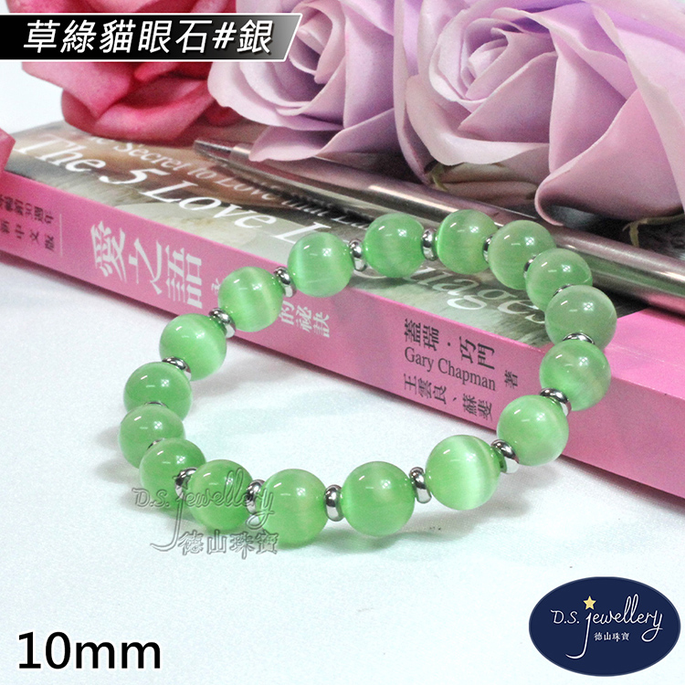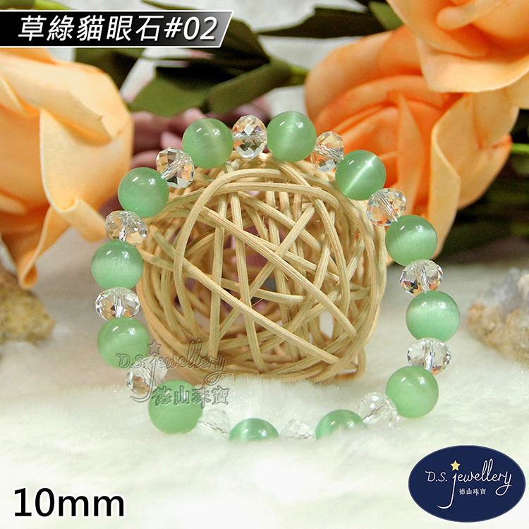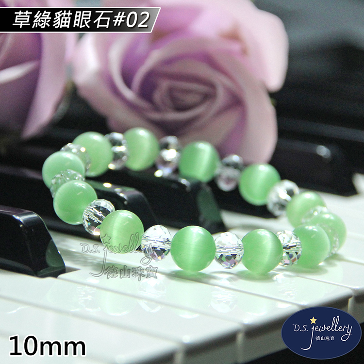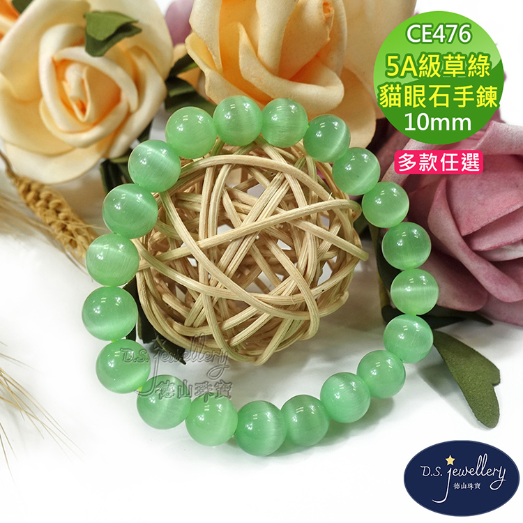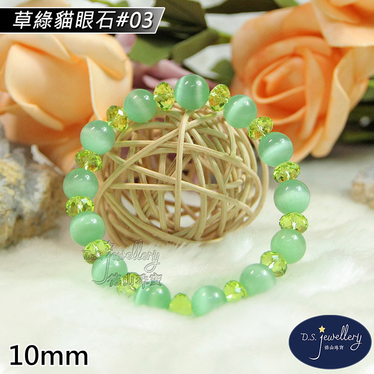 名稱:【德山珠寶】5A級10mm草綠貓眼石造型手鍊(CE476)