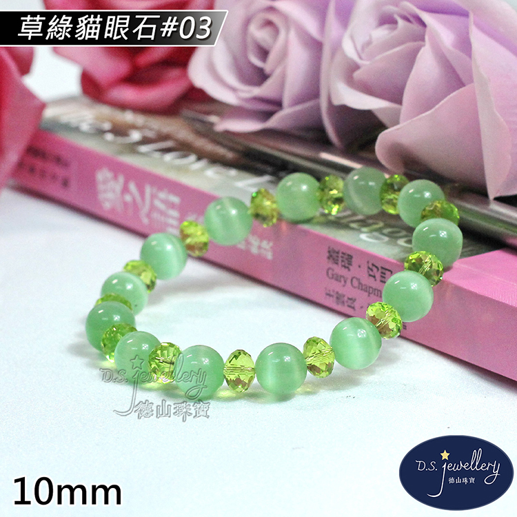 【德山珠寶】5A級10mm草綠貓眼石造型手鍊(CE476)
