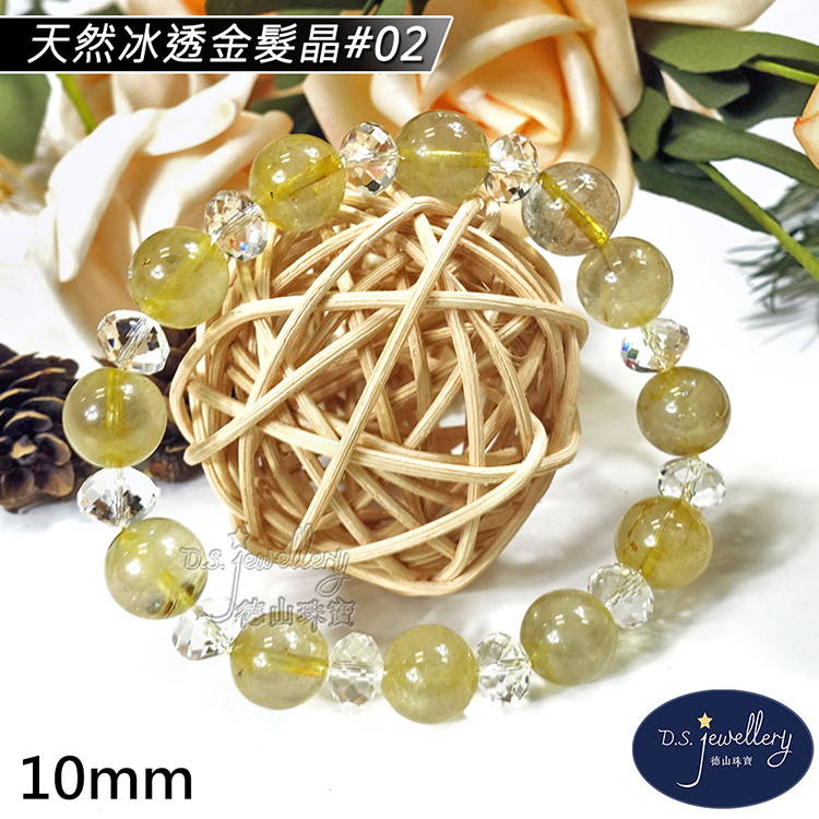【德山珠寶】5A級10mm天然冰透金髮晶水晶造型手鍊(CE476)