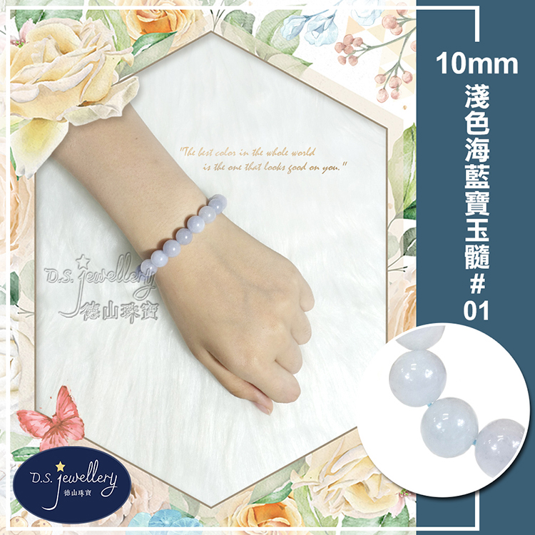 名稱:【德山珠寶】5A級10mm海藍寶玉髓淺色款造型手鍊(CE476)