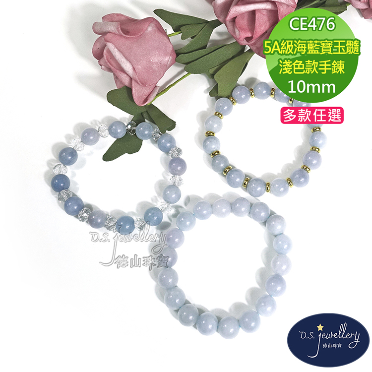 【德山珠寶】5A級10mm海藍寶玉髓淺色款造型手鍊(CE476)