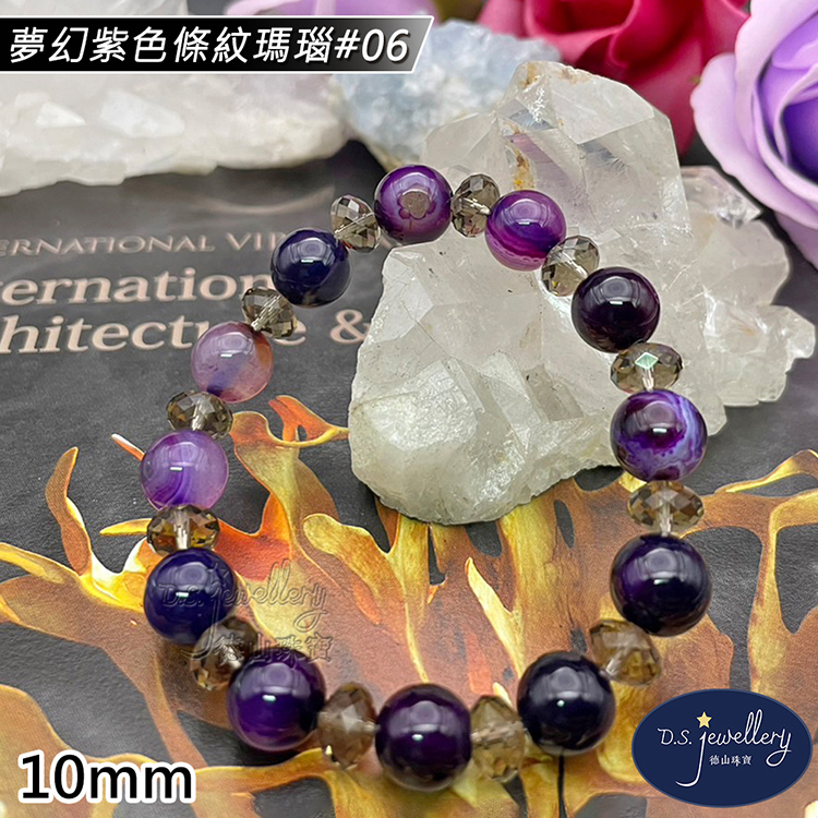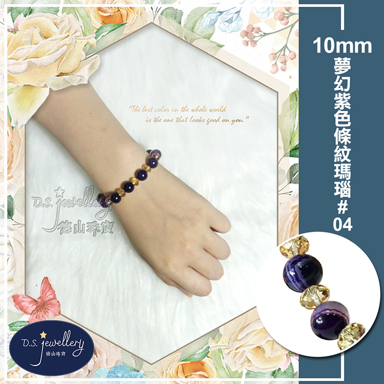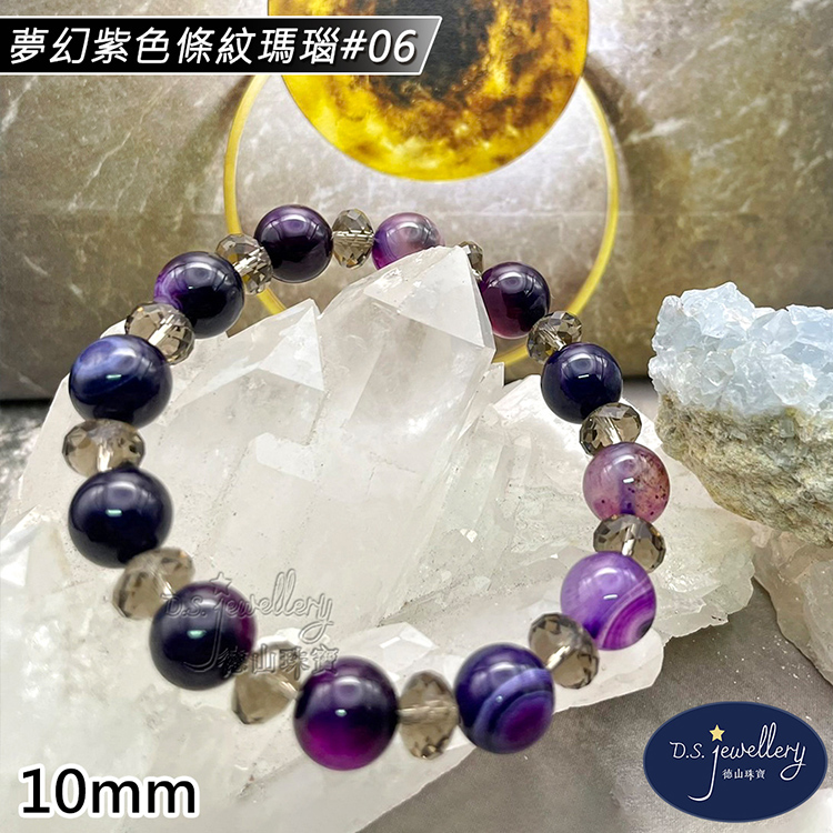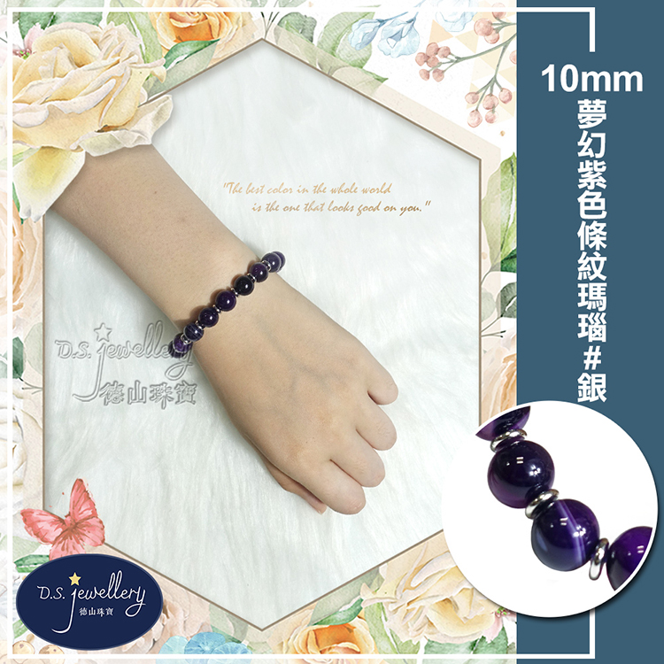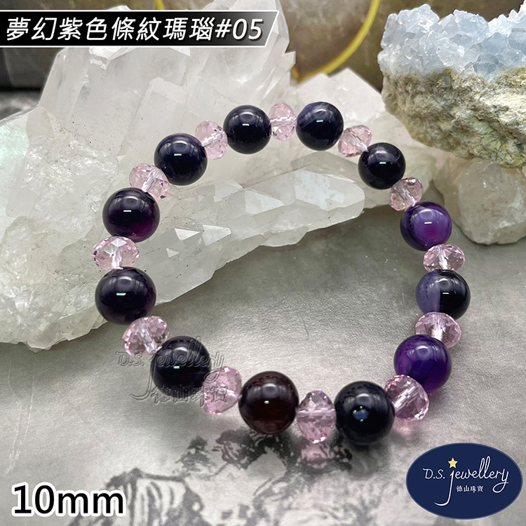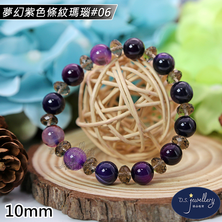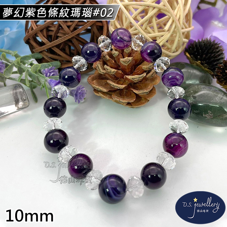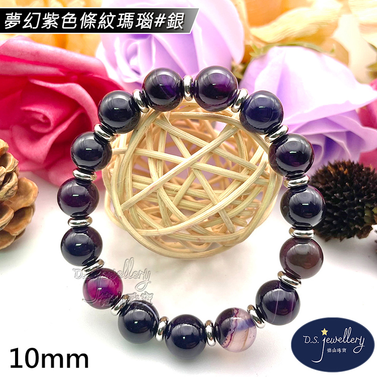 【德山珠寶】5A級10mm夢幻紫色條紋瑪瑙造型手鍊(CE476)