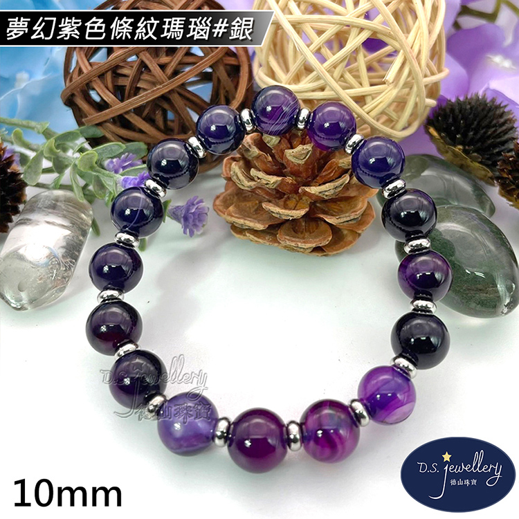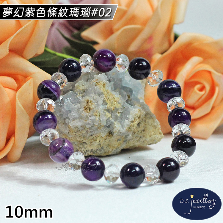 名稱:【德山珠寶】5A級10mm夢幻紫色條紋瑪瑙造型手鍊(CE476)