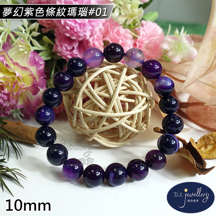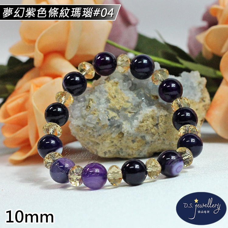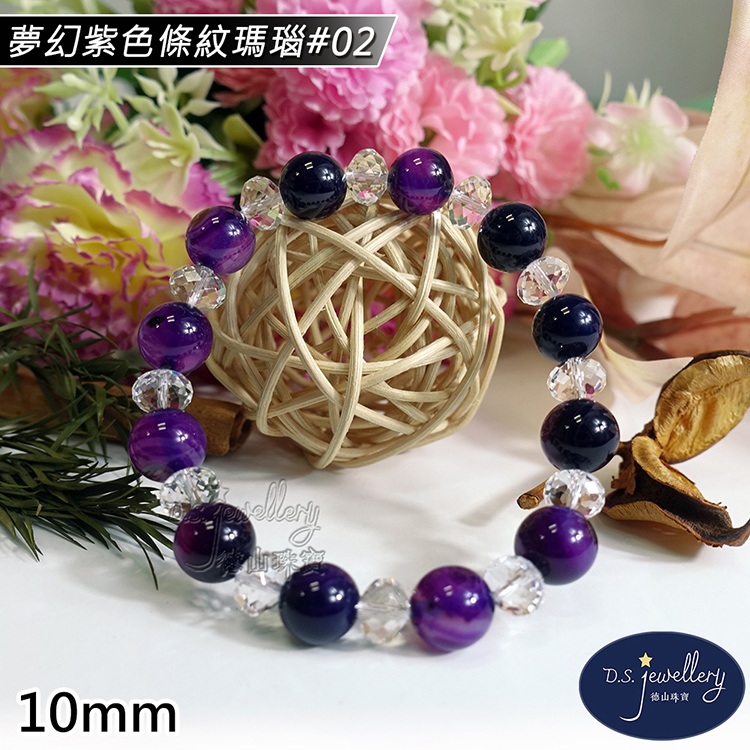 材質:5A級10mm夢幻紫色條紋瑪瑙