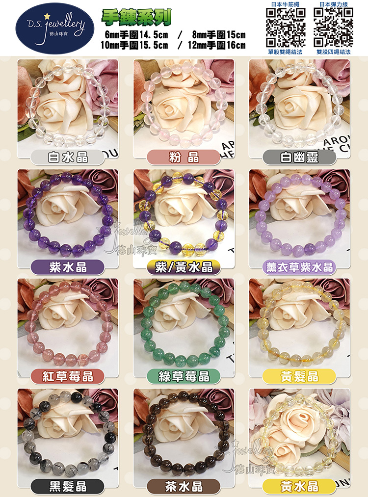 配件:附贈同款草莓晶一顆+約200公分日本蠶絲彈力線or約100公分牛筋線+引線工具(供個人換線或調整手圍大小使用),附贈禮盒 (好收藏送禮大方、最佳首選)