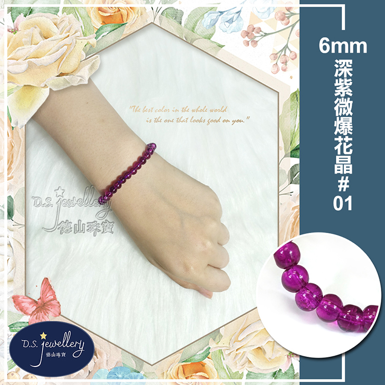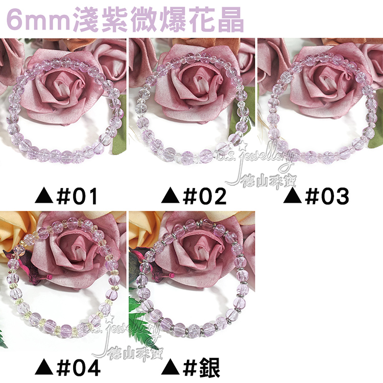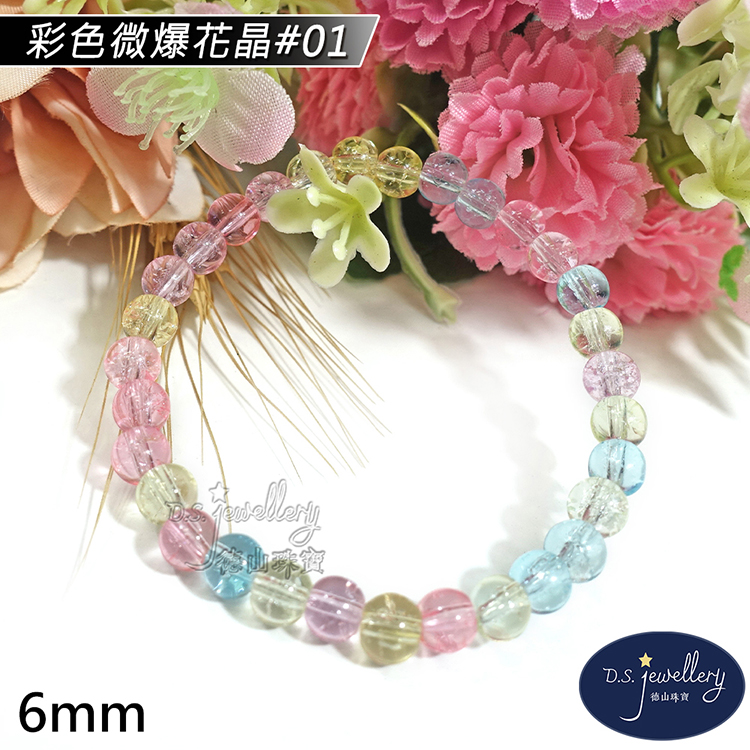 名稱:【德山珠寶】5A級6mm多色微爆花晶穿搭配色水晶琉璃造型手鍊(CE476)