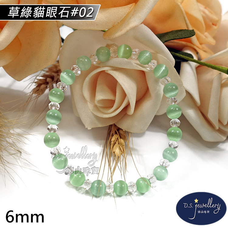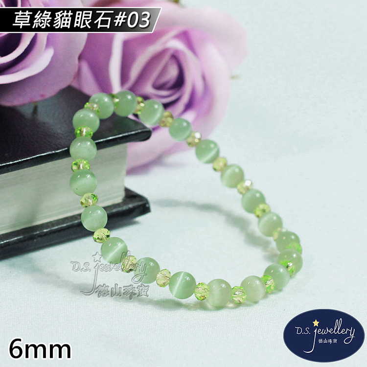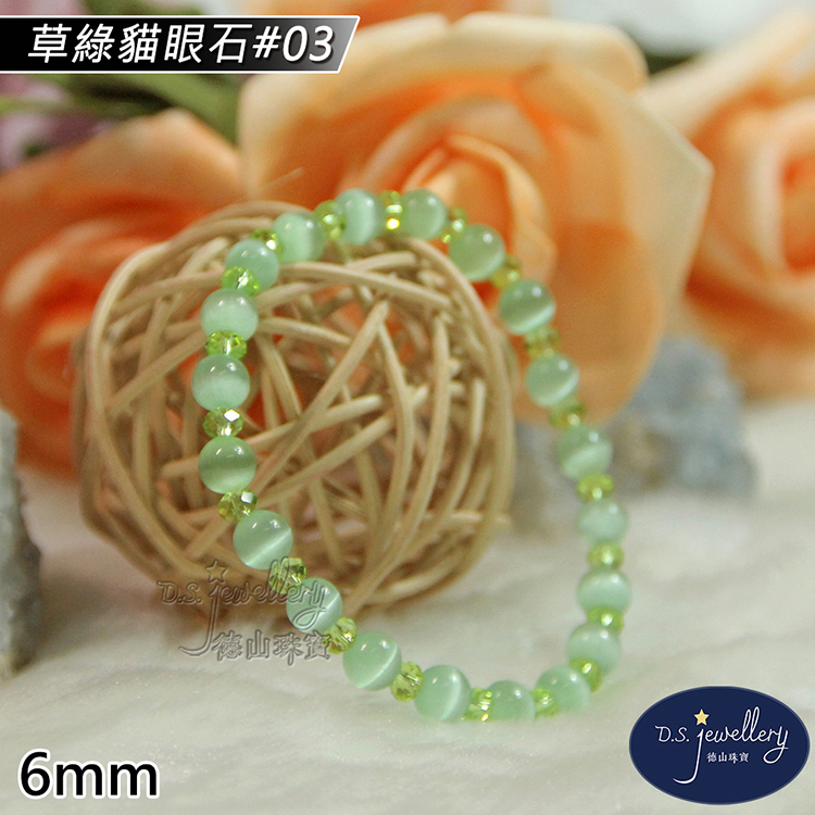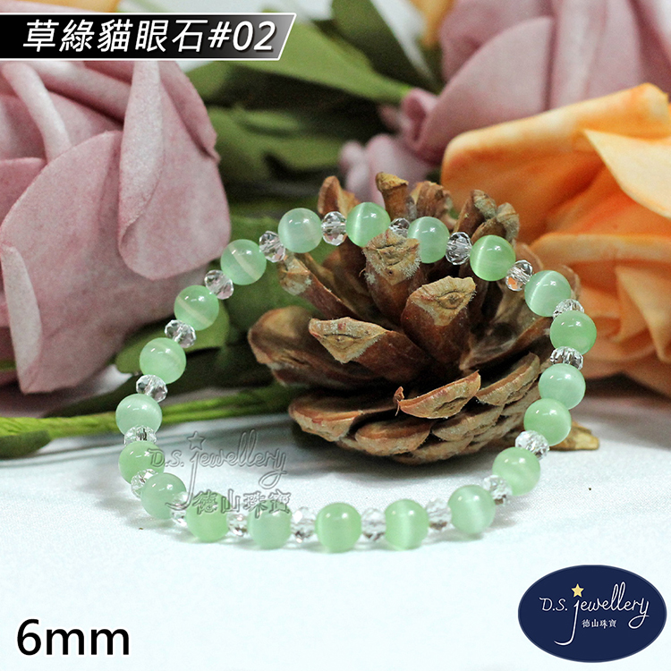 名稱:【德山珠寶】5A級6mm草綠貓眼石造型手鍊(CE476)